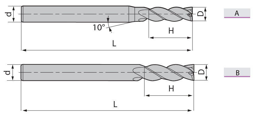 Фреза концевая удлиненная DP-(D3.0-75-4T-EL)
