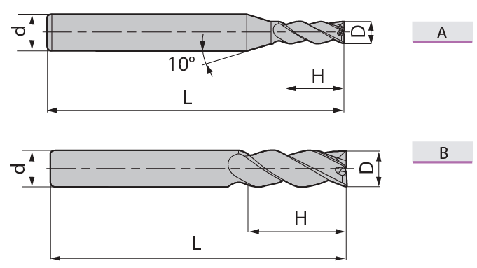 Фреза концевая удлиненная DP-(D3.0-75-4T-G-EL)