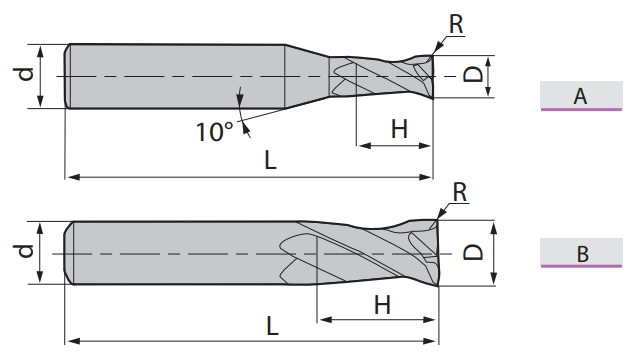 Фреза конечная с угловым радиусом закругления для обработки плоских и боковых поверхностей пазов.