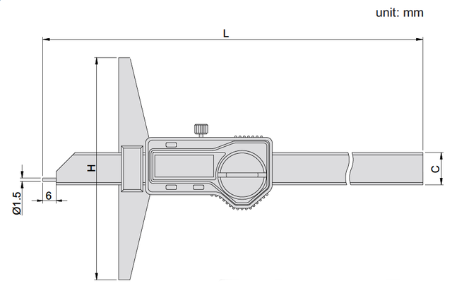 Для измерения глубины небольших отверстий или канавок. Разрешение: 0,01 мм/0,0005 дюйма. Автоматическое включение/выключение питания. Кнопки: включение/выключение, ноль, мм/дюйм. Вывод данных (код кабеля: 100-11 или 100-12). Изготовлен из нержавеющей стали.