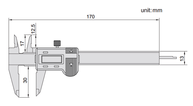 Разрешение: 0,01 мм/0,0005 дюйма. Кнопки: вкл./выкл., ноль, мм/дюйм. Соответствует DIN862. Изготовлен из нержавеющей стали.