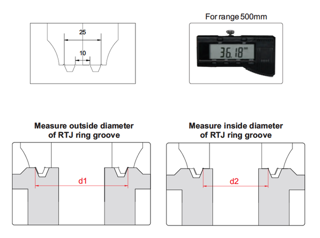 Для измерения кольцевой канавки фланца Разрешение: 0,01 мм/0,0005 дюйма Автоматическое включение/выключение питания Кнопки: вкл/выкл, ноль, мм/дюйм. Вывод данных (код кабеля: 100-11 или 100-12 для 142-012-11, 100-15 для 142-024-11) Изготовлен из нержавеющей стали.
