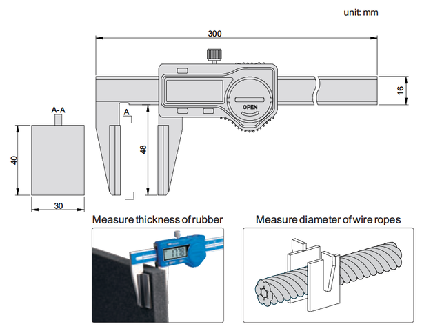 Для измерения диаметра тросов и толщины мягких материалов, таких как резина и т. д. Разрешение: 0,01 мм/0,0005 дюйма Кнопки: вкл./выкл., ноль, мм/дюйм. Автоматическое включение/выключение питания. Вывод данных (код кабеля: 100-11 или 100-12). Изготовлен из нержавеющей стали.