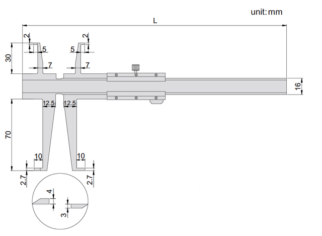 Для измерения диаметра канавок внутри отверстий. Градировка: 0,02 мм. Изготовлен из нержавеющей стали. Поверхность считывания с сатинированным хромированием.