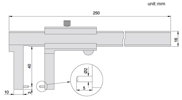Для измерения толщины стенок внутренних отверстий и углублений. Изготовлен из нержавеющей стали. Поверхность считывания с матовым хромовым покрытием.