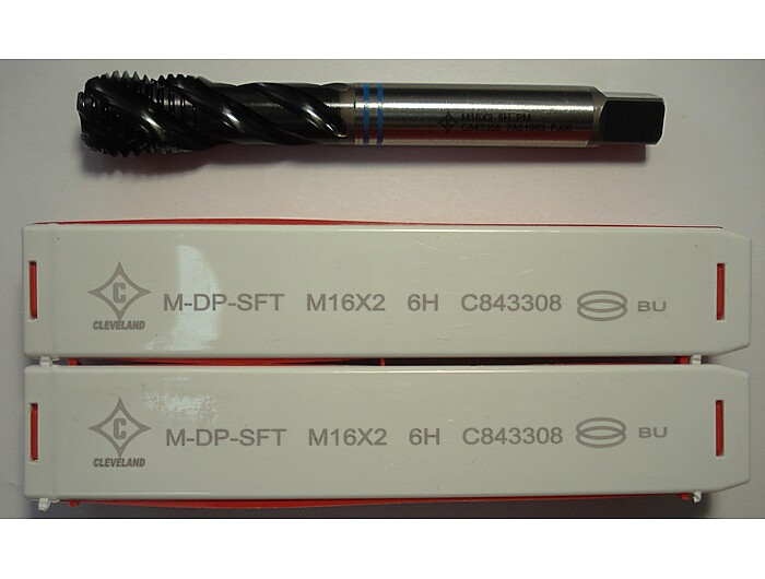 Метчик спиральный SFT M16*2 C843308 DIN376 Двойное кольцо голубое